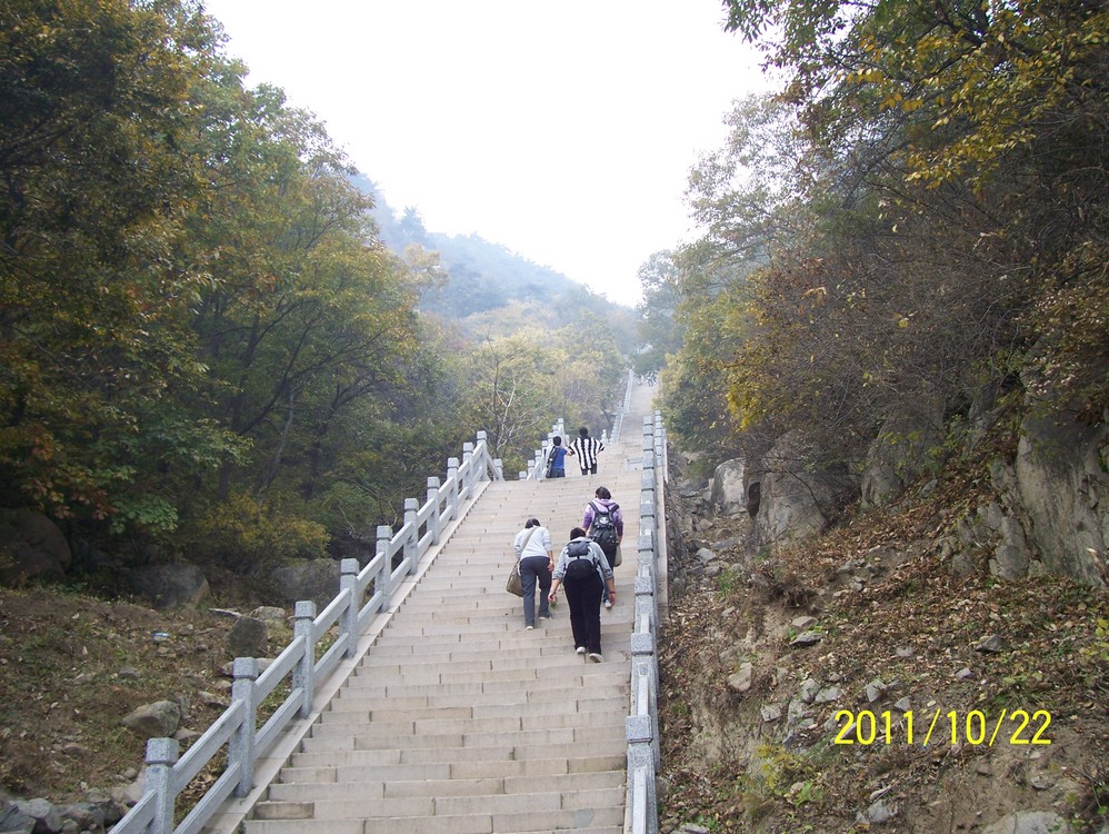 我们坐火车中午就到了,把东西放到农家院后,主人就把我们带到了山脚下,开始了我们的爬山,盘山 比我想象的难爬,我们连上带下一共花了7个小时,下山时我的腿就悲催的瘸了,下山后农家院主人来接我们回去正好吃晚餐。