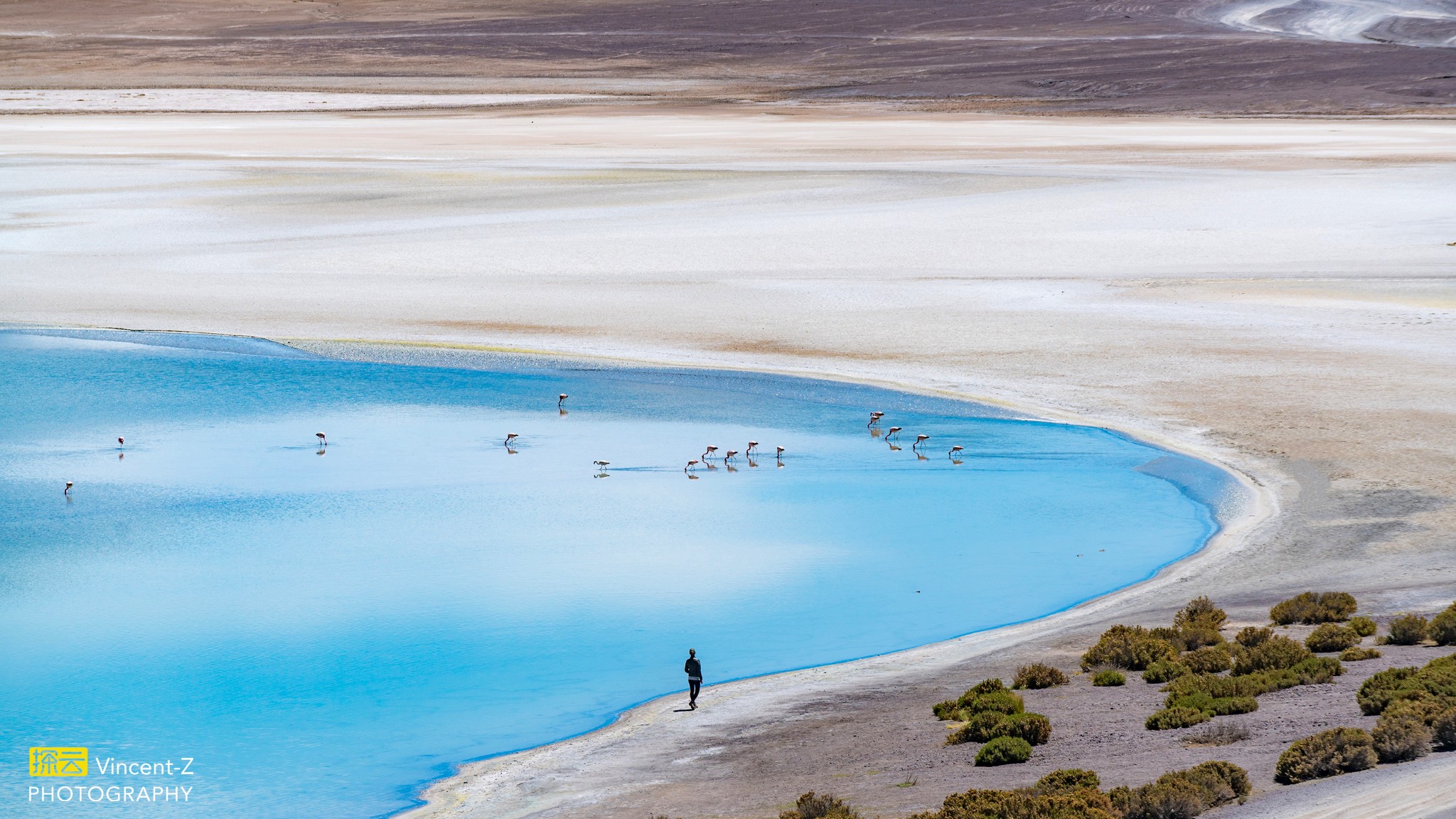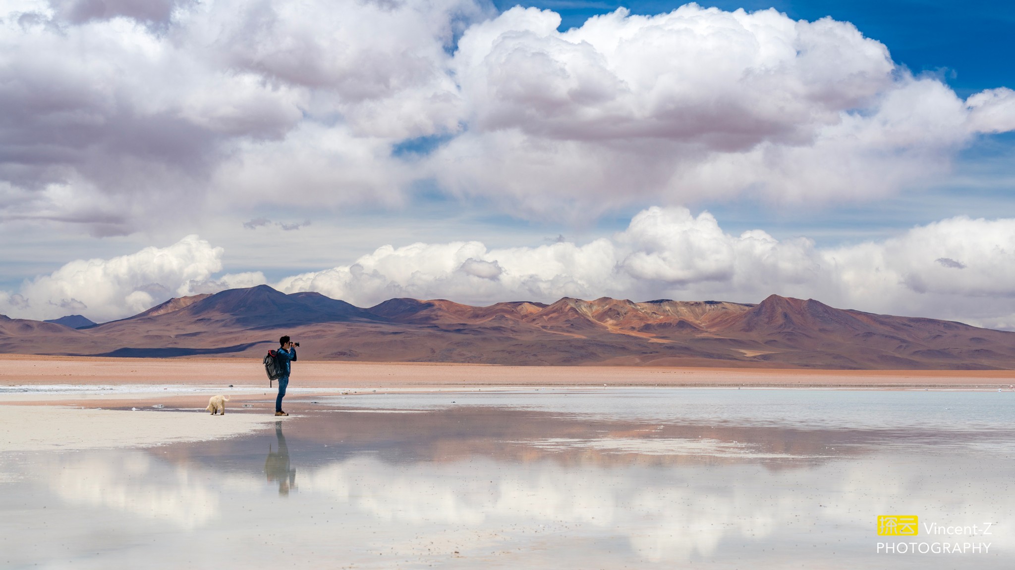 ▲Eduardo Abaroa自然保护区的Salar de Chalviri盐湖,身后的小狗太给力了。