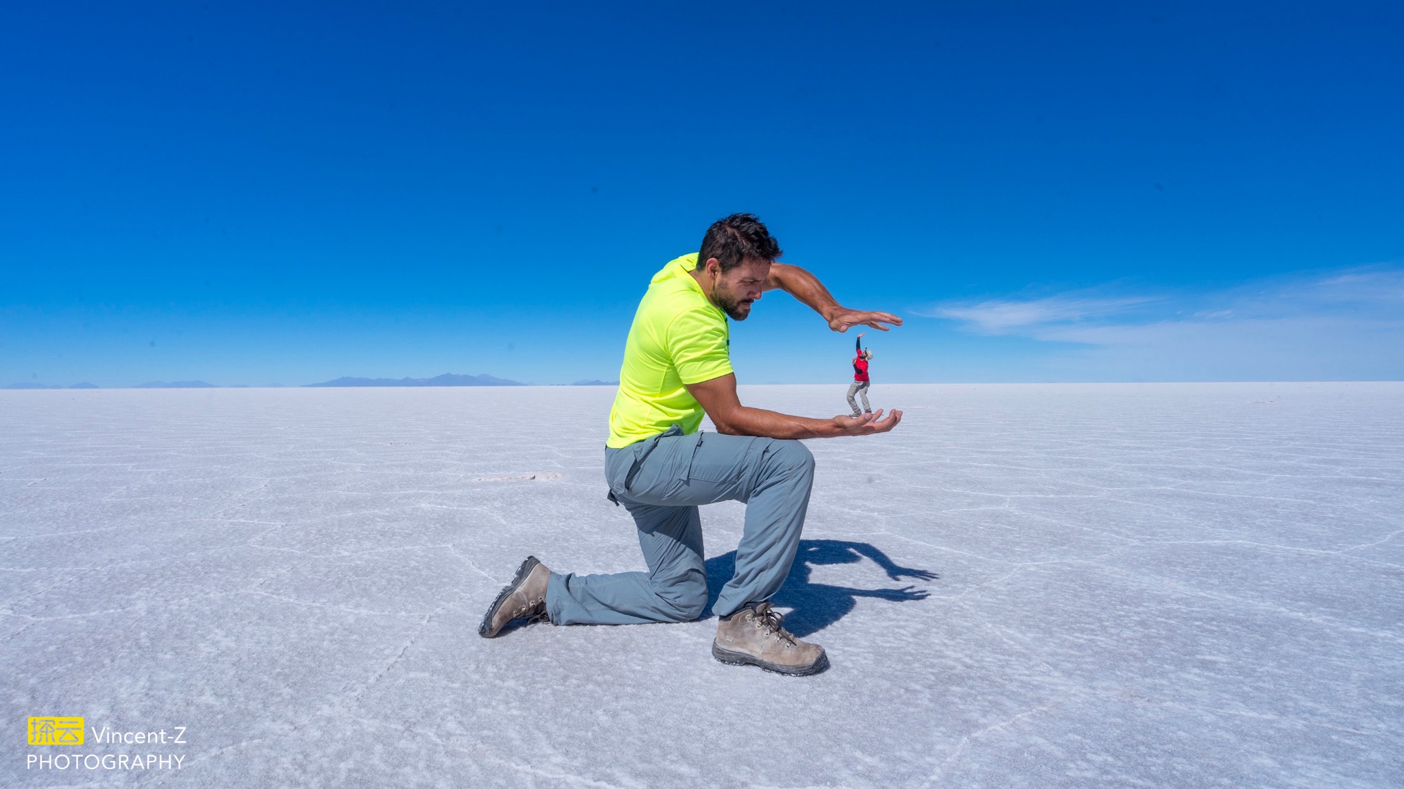▲乌尤尼盐湖团遇到的两个好玩的巴西帅哥。没有水的盐田可以怎么拍照?第2章有拍照指南。