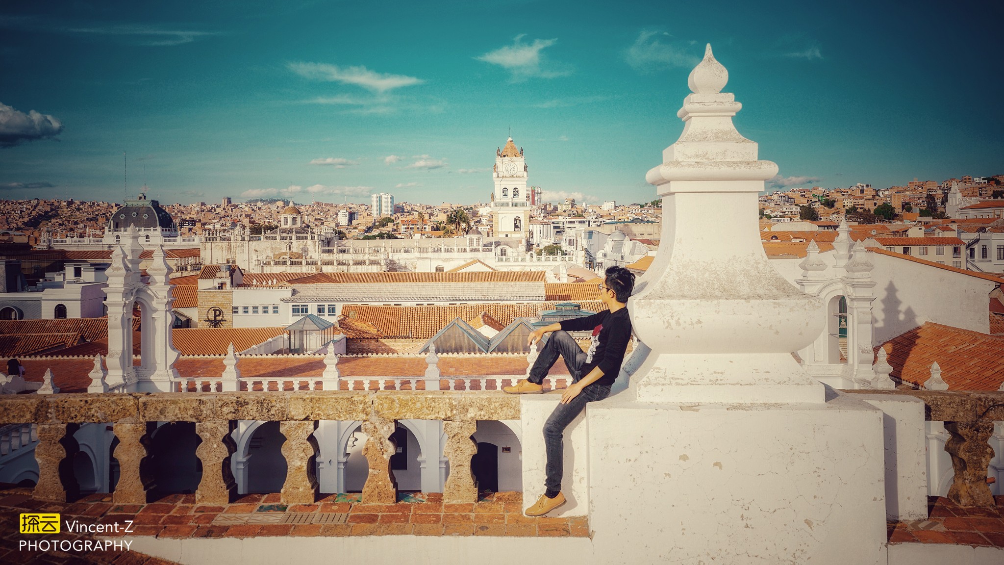 ▲玻利维亚最美的城市——白城苏克雷,玻利维亚的宪法首都。保留着18-19世纪的殖民地建筑风貌,满城白色的房子橙色的瓦顶,明显的西班牙安达卢西亚风格。图为San Felipe Neri教堂顶部,且看第4章的独家攻略。