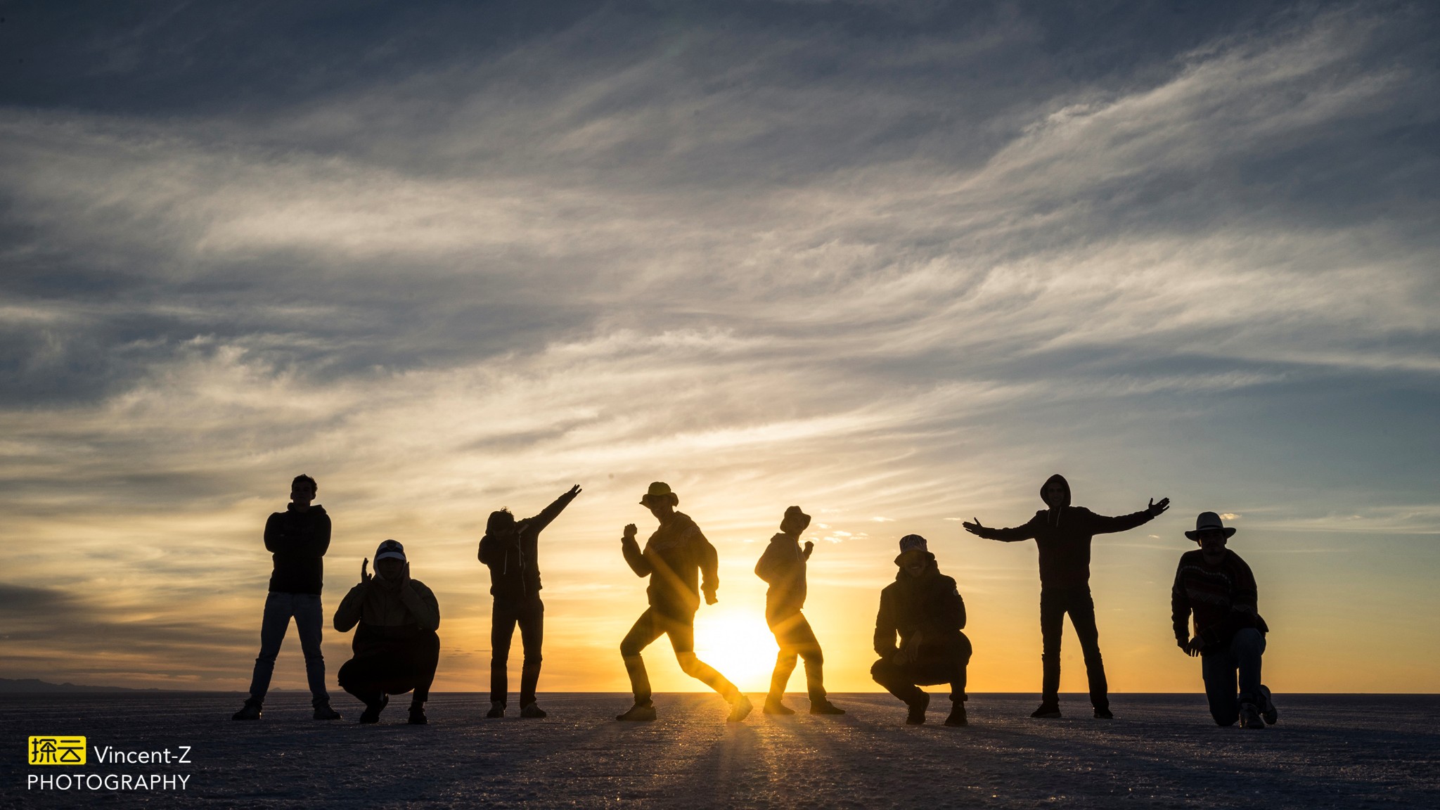 ▲乌尤尼盐湖团帮同行两车小伙伴拍的日出剪影