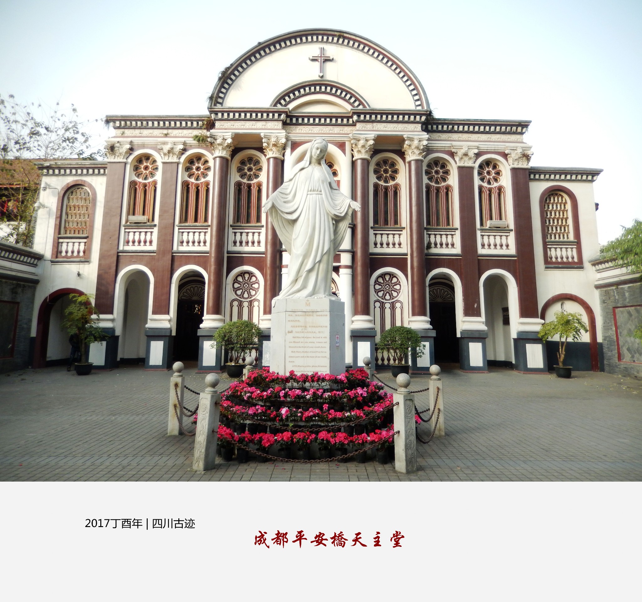 坐落在成都平安桥街的成都平安桥天主堂,建筑面积约8000多平方米,由总堂和主教公署组成,是一座已逾百年中西合璧的建筑,2013年被国家核定公布为第七批全国重点文物保护单位。