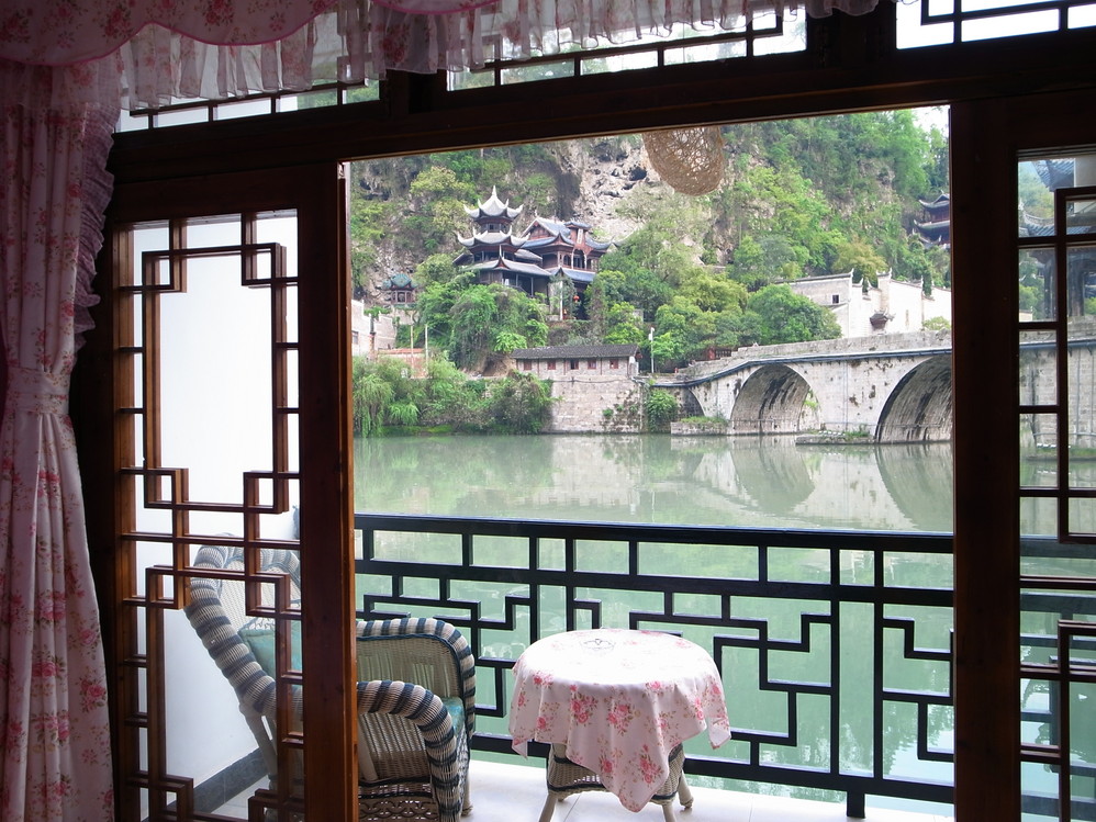我们住的客栈正好能看到青龙洞掩映在青山绿水中,尤其夜晚的亮化更带来了使我们震撼的美。