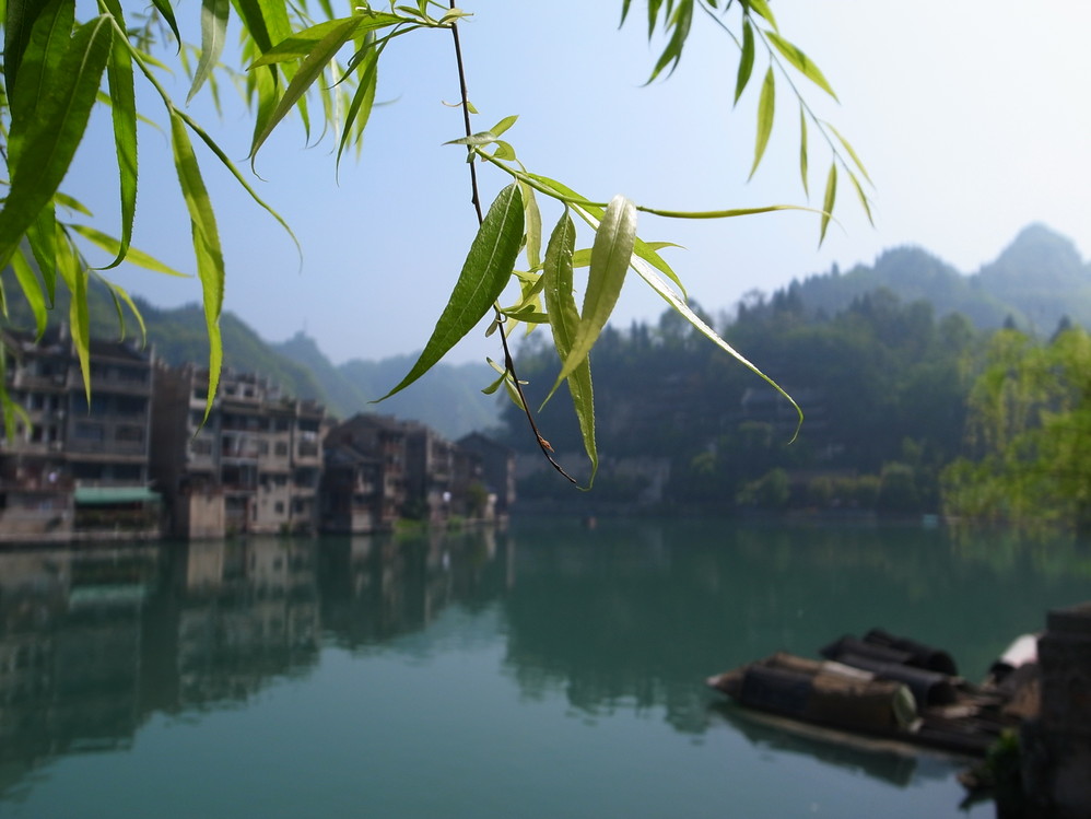 舞阳河的两岸一边繁华喧嚣,一边宁静悠闲。风抚柳,给这个小城带来了别样的风情。