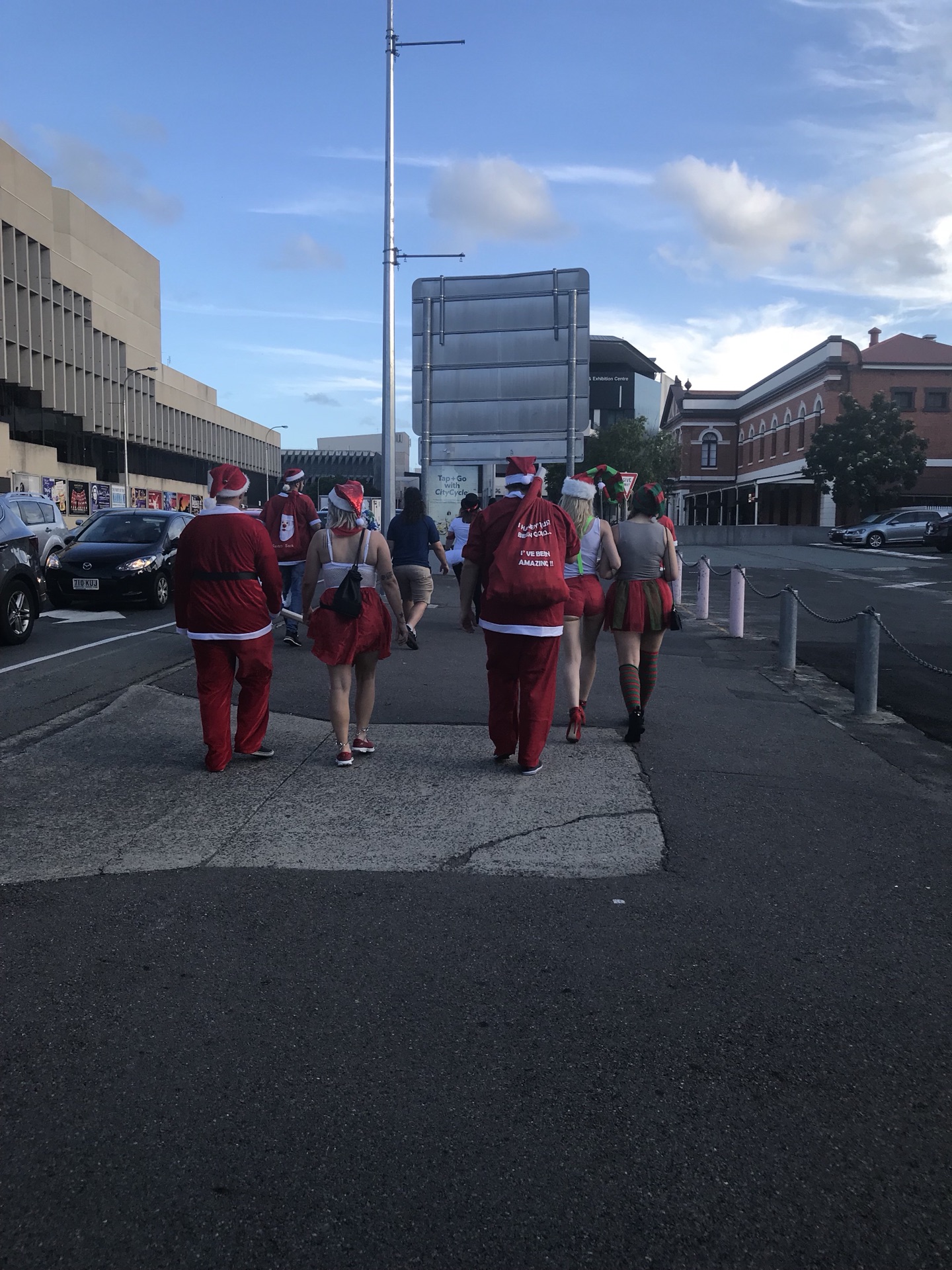 下午五点才出门,遇见一群穿着圣诞服装的人