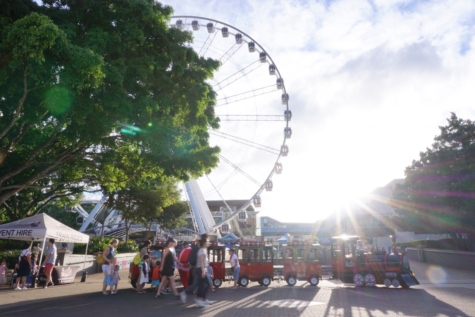早餐,布里斯班坐火车去黄金海岸,checkin入住,午餐,Q1(SKYPOINT)攀登塔顶,冲浪者天堂,Q1看黄昏,附近晚餐