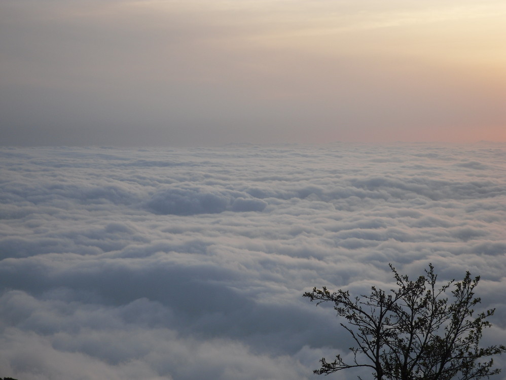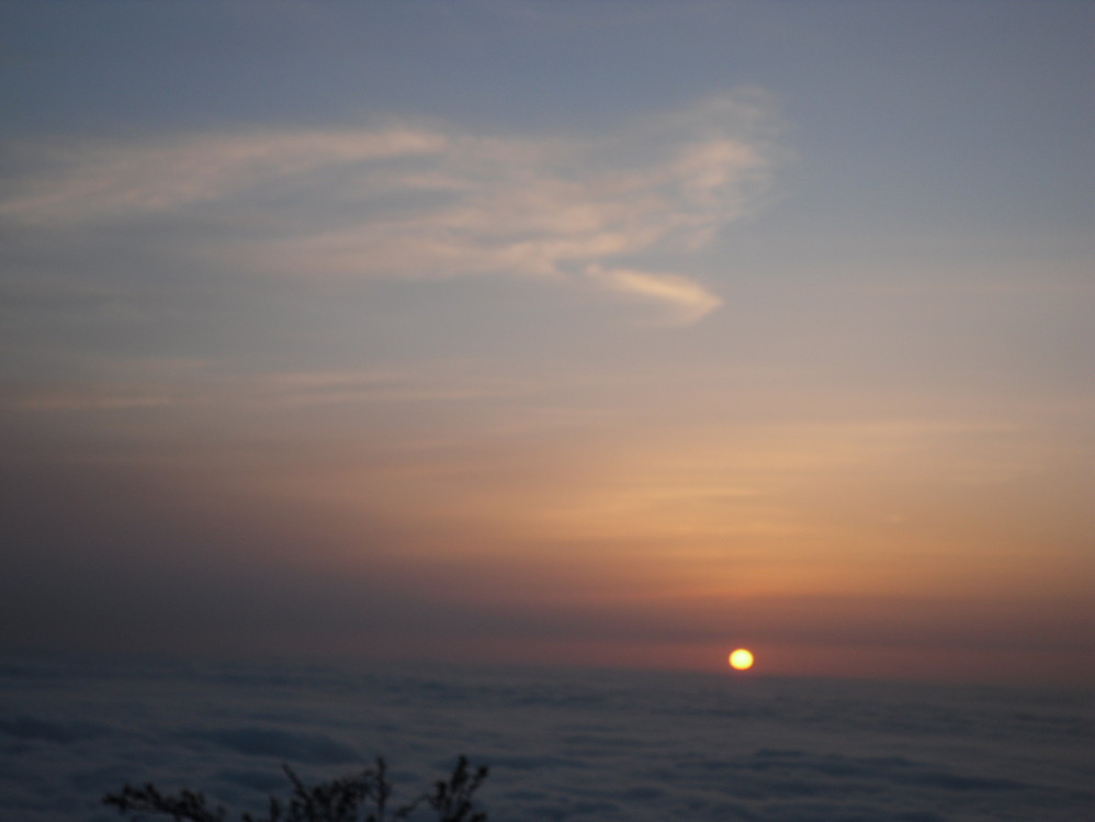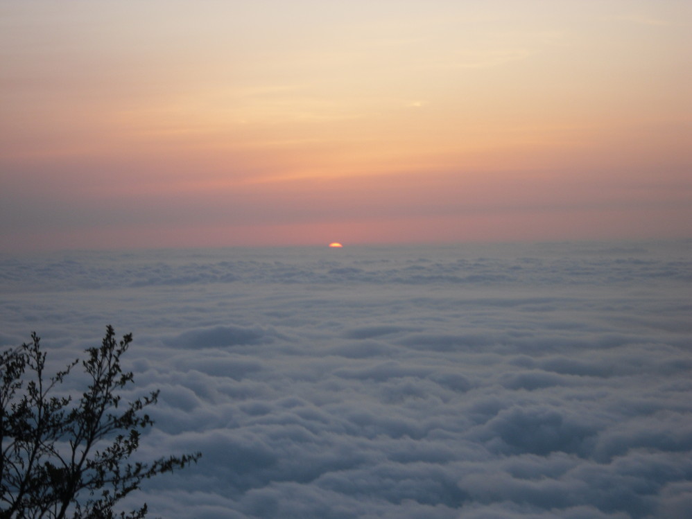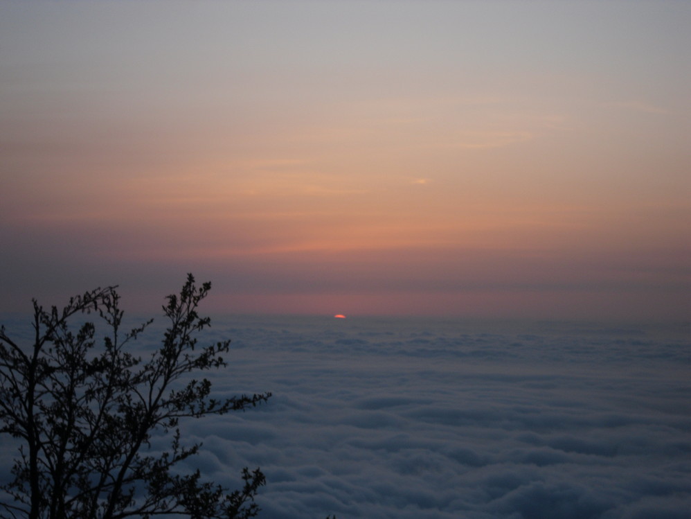 翻腾的云海,迷离的日出。裹着大衣,顶着寒风,守在山头的我终于见到了。