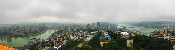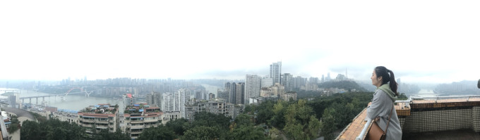 鹅岭公园的塔楼上俯瞰重庆,虽然天阴阴的,但也不会影响好心情!上塔5块,5块买不了吃亏,买不了上当咯