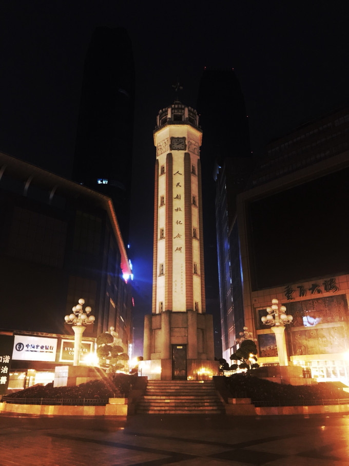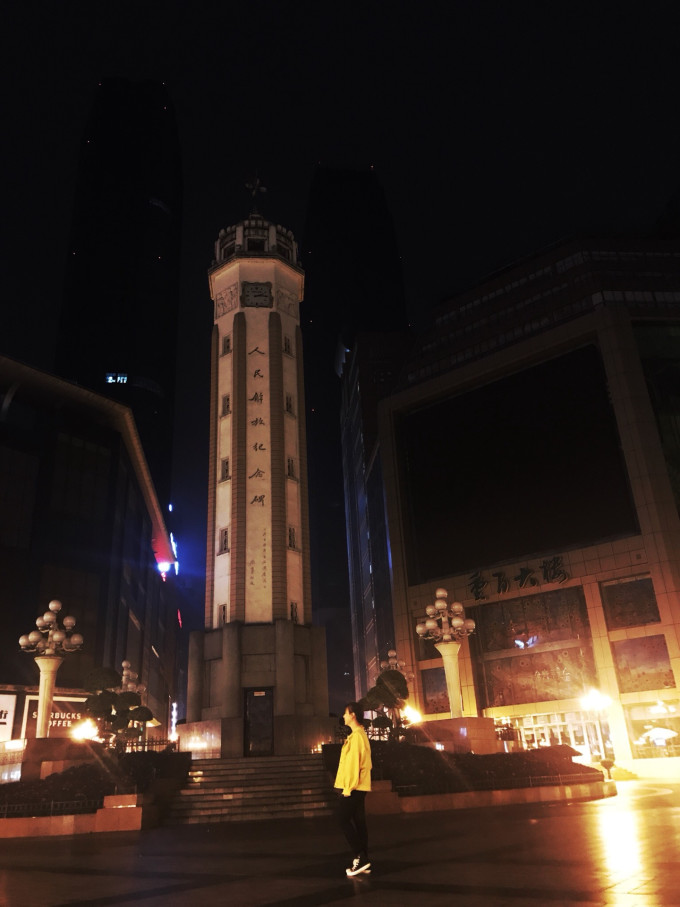 凌晨三点,平日里繁华的解放碑空无一人,行李一扔就拍,过了这个村就没这个店了,白天你想拍个单人合照想都不要想