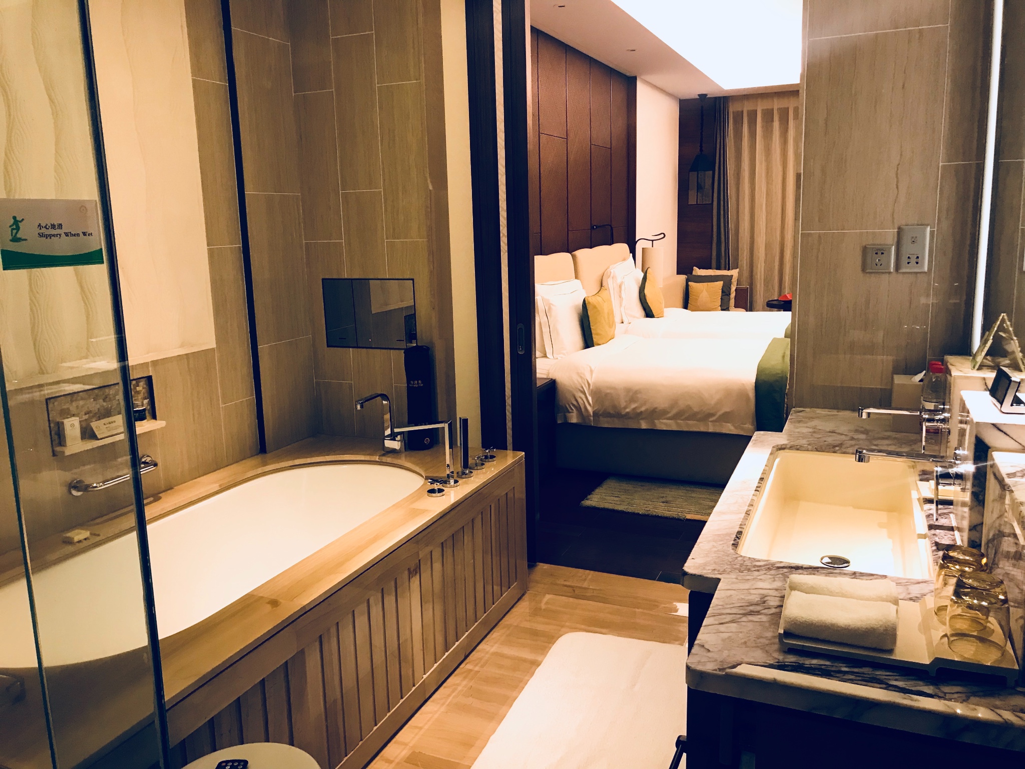 2、晚上到达三亚凤凰机场,有会开车的可以提前租车(一嗨租车),下机后联系一嗨去机场接机,三亚打车较贵,租车很便宜,自己开车出行比较方便。租好车后驱车前往海棠湾9号酒店,办理好入住后可以在酒店转一下,游个泳或者去酒店的酒吧喝酒,酒店还有健身房和台球厅,看个人的时间和精力,如果太累了,就在自己的房间浴缸里好好泡个澡,养足精力,准备第二天游玩。
