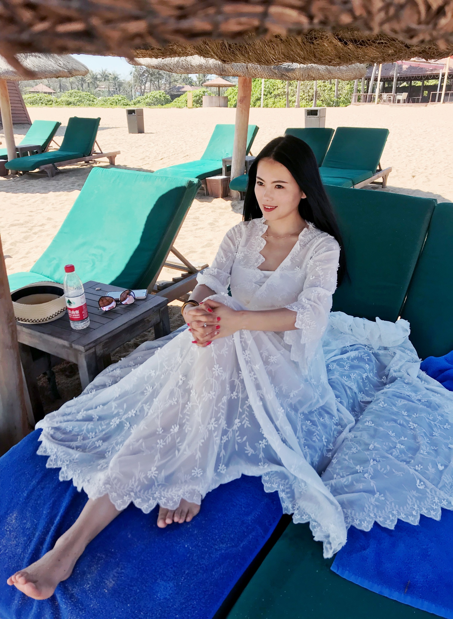三亚含早点的用餐时间通常在7:30——10:30之间,都是自助餐,自己把握好用餐时间,退房在12点,海棠湾9号酒店有自己的园子和连接的海域,海水应该是三亚最好的了,清澈湛蓝,重点是人少,还有酒店的安全员巡视,沙滩也很干净,拍出照片有种去了马尔代夫的错觉。女孩子可以穿白纱裙戴墨镜遮阳帽拍美照了。