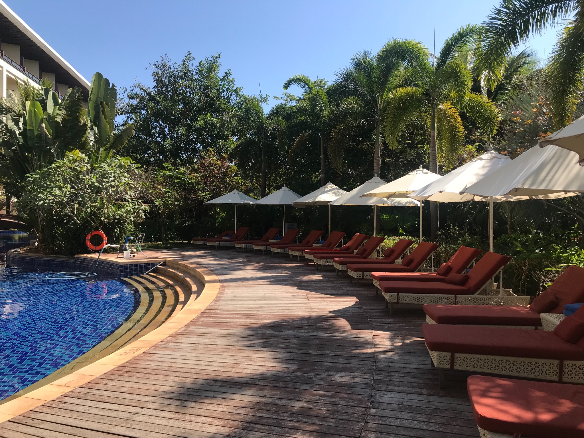 红树林度假世界里面有很多酒店,有大王棕酒店、皇后棕等等一堆棕的名字,但都是一家。涵盖了吃饭、看电影、购物、泳池、景观、会议等设施,里面集结了各种去度假的男女老少,整体特点就是人多,特别多。尤其体现在吃早饭的时候,不喜欢吵闹的我没有待太久就离开了。