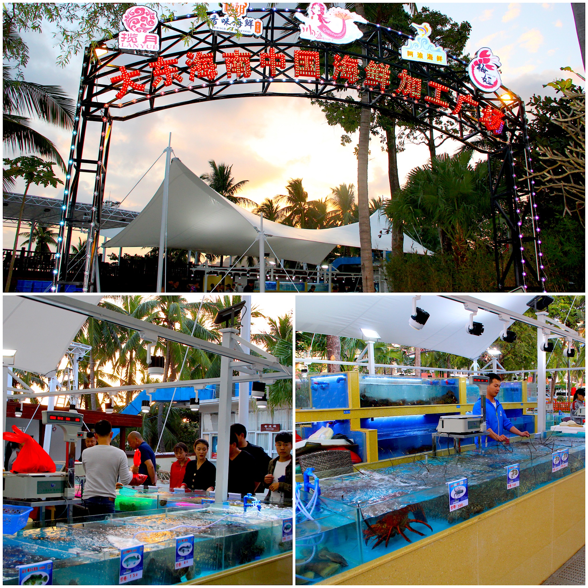 三亚的海鲜加工广场很多,而离我们比较近的就是第一市场和南中国海鲜广场了。实在是不喜火热的第一市场嘈杂的环境,朋友说可以去大东海的南中国海鲜加工场,那里坐拥一线海景,海鲜也很是实惠,吃海鲜看风景实在惬意。刚好林姐香味海鲜在这里也设有店,我俩欣然前往。