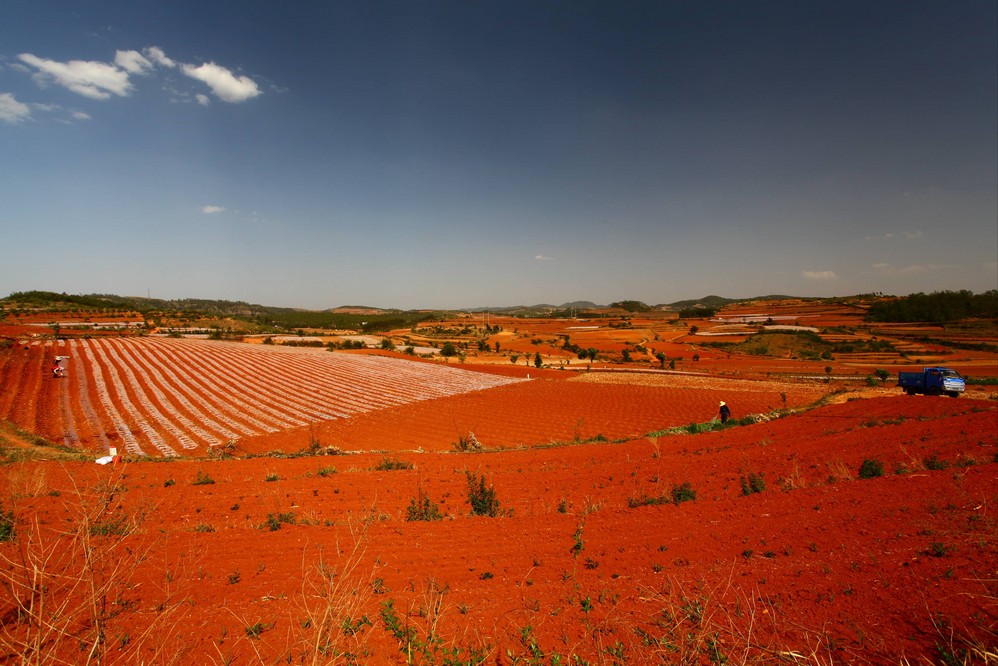 路上景色,像红土地。