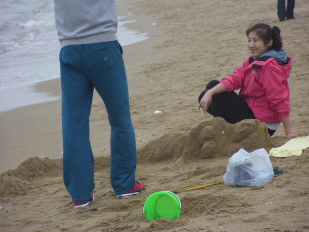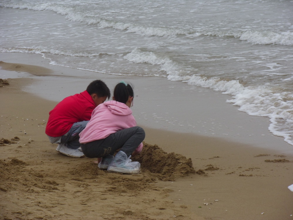 约两个小时后打道回府。南戴河边我们捡贝壳去喽。