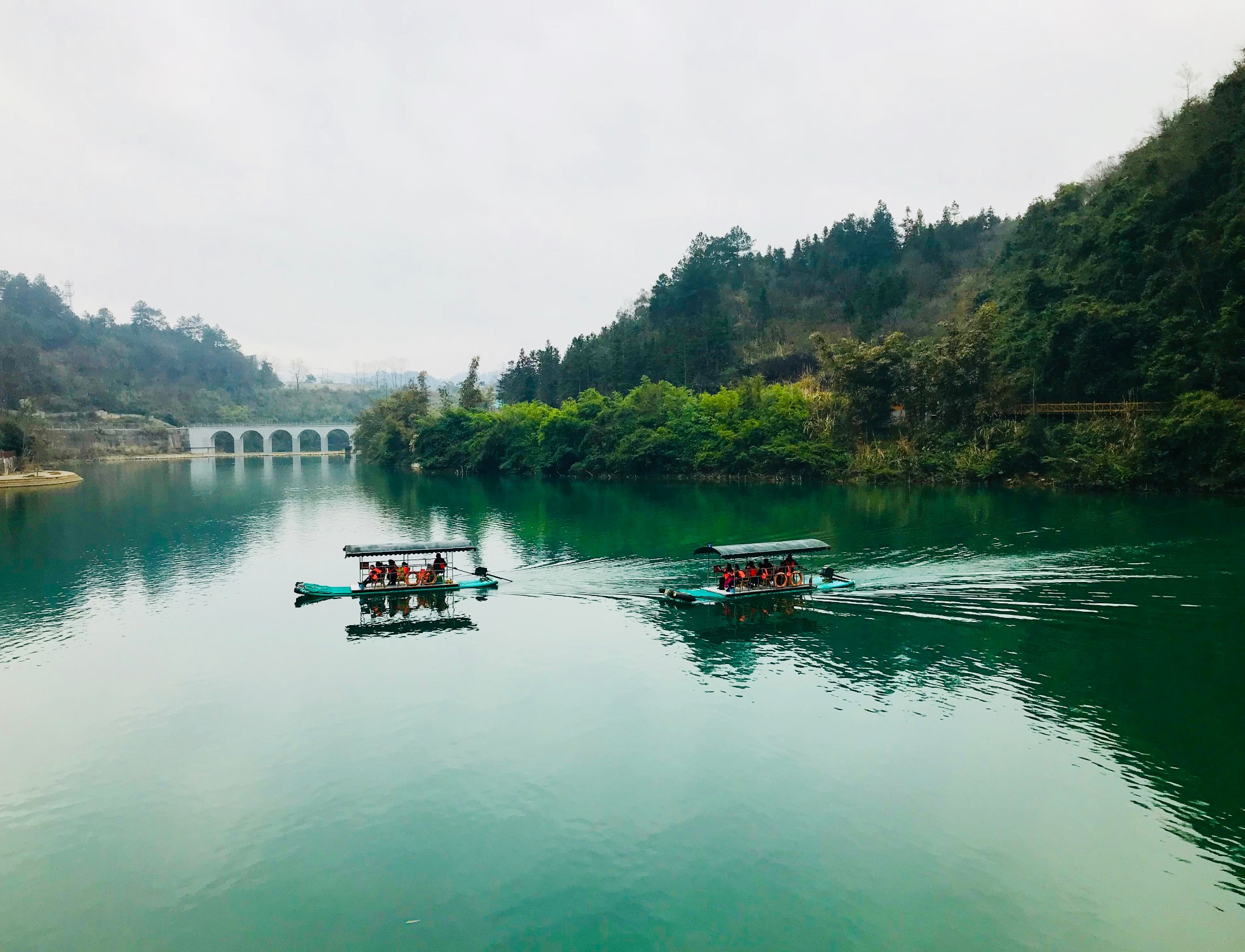 大七孔只有一条路走到头再原路返回,出于懒得走回头路和节省体力,回来的游船就显得性价比极高~