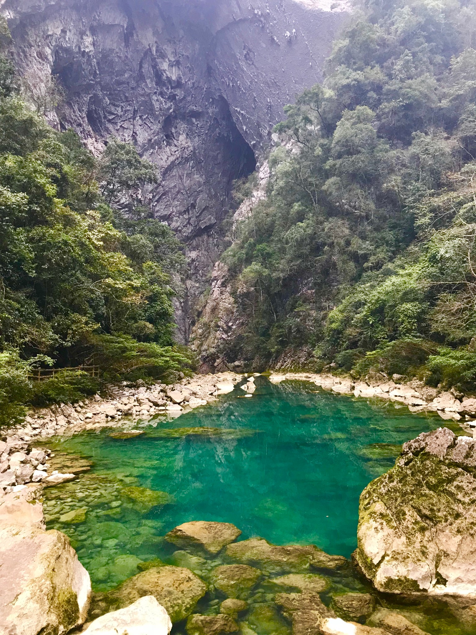 2月份属于贵州的缺水季,水位下降后很多本该有的景色,诸如大七孔的天生桥和小七孔的水上森林都显得很荒凉。还好路上有青旅认识的小姐姐母女,小朋友一路上对什么都好奇,好不可爱~