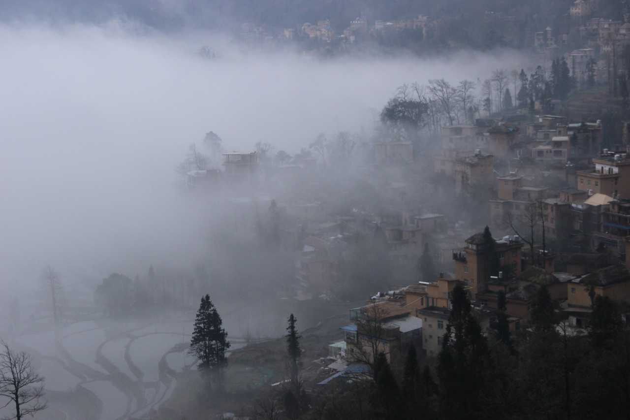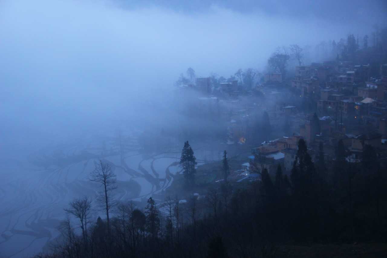 到达坝达梯田还很早,大约是今天雾太大了,景区里没什么人,几乎不见长枪短炮,想着反正回酒店也没什么事情,还不如在这碰碰运气,说不定会有奇迹发生。当然奇迹之所以是奇迹,就是因为没那么容易遇到,等了三四个小时,不见太阳的踪迹。