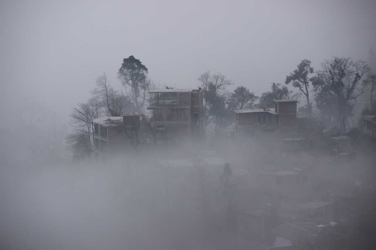 云雾在山间、地头、村子间流淌,缠绵至极,不愿离去