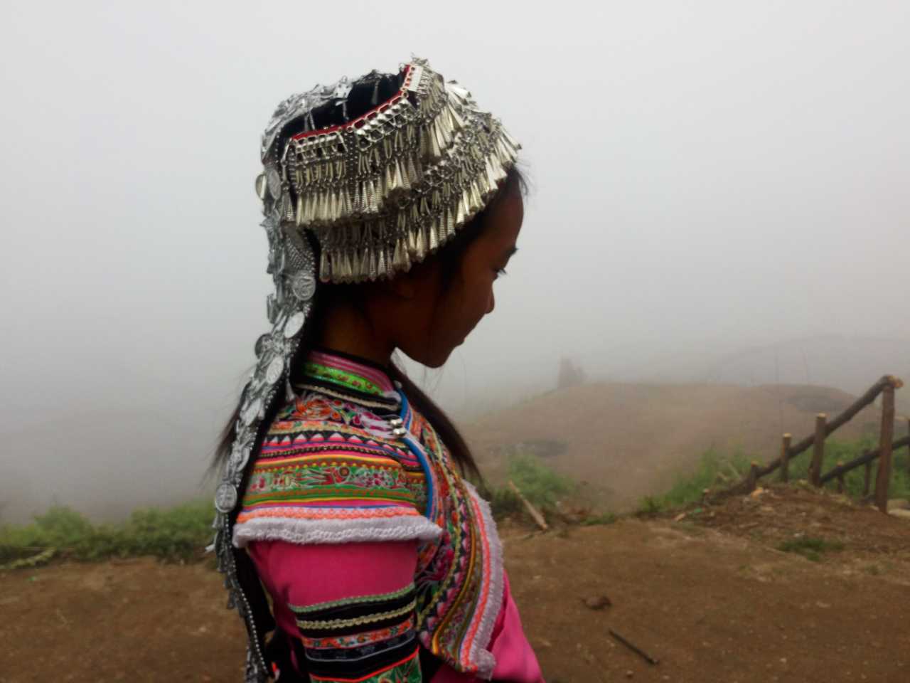 十点左右在蓝梯田等了半小时,雾实在太大了,一直散不了,遇到当地两个小姑娘,与小姑娘聊了会天,关于她们的学校生活,我猜她们在这应该是专门与人合影收费的(我没问,也许不是)。穿的很单薄,光脚穿拖鞋,我很想给点什么,然而身边什么都没有,除了一个手机。小姑娘很大方的让我拍照,我特别不好意思的拍了两张。