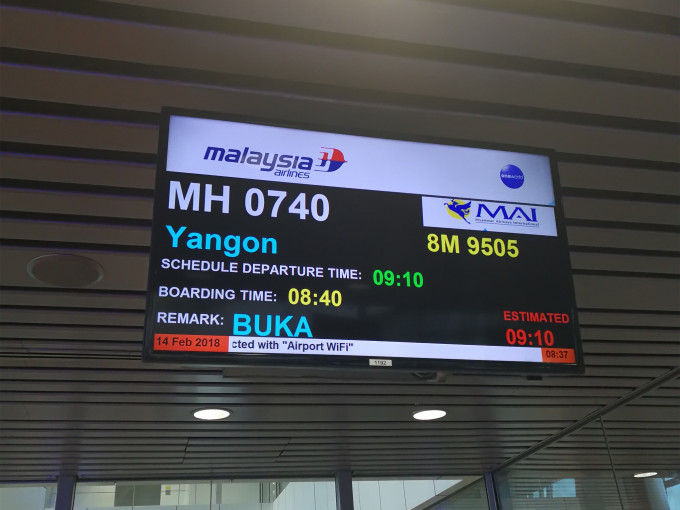 D13(2月25日)—周日:仰光―吉隆坡(马航:MH741 [仰光机场(Yangon International Airport (T2))] 11:15-15:40 [吉隆坡机场 Terminal:M](2小时55分钟) 含20KG行李)