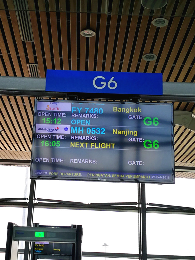 下午19点左右打车去万达→坐机场大巴去机场(40分钟左右)→21点左右到马航柜台办理值机→23:30坐马航(MH533)去吉隆坡→当地时间05:30到吉隆坡机场(无时差),不入境。