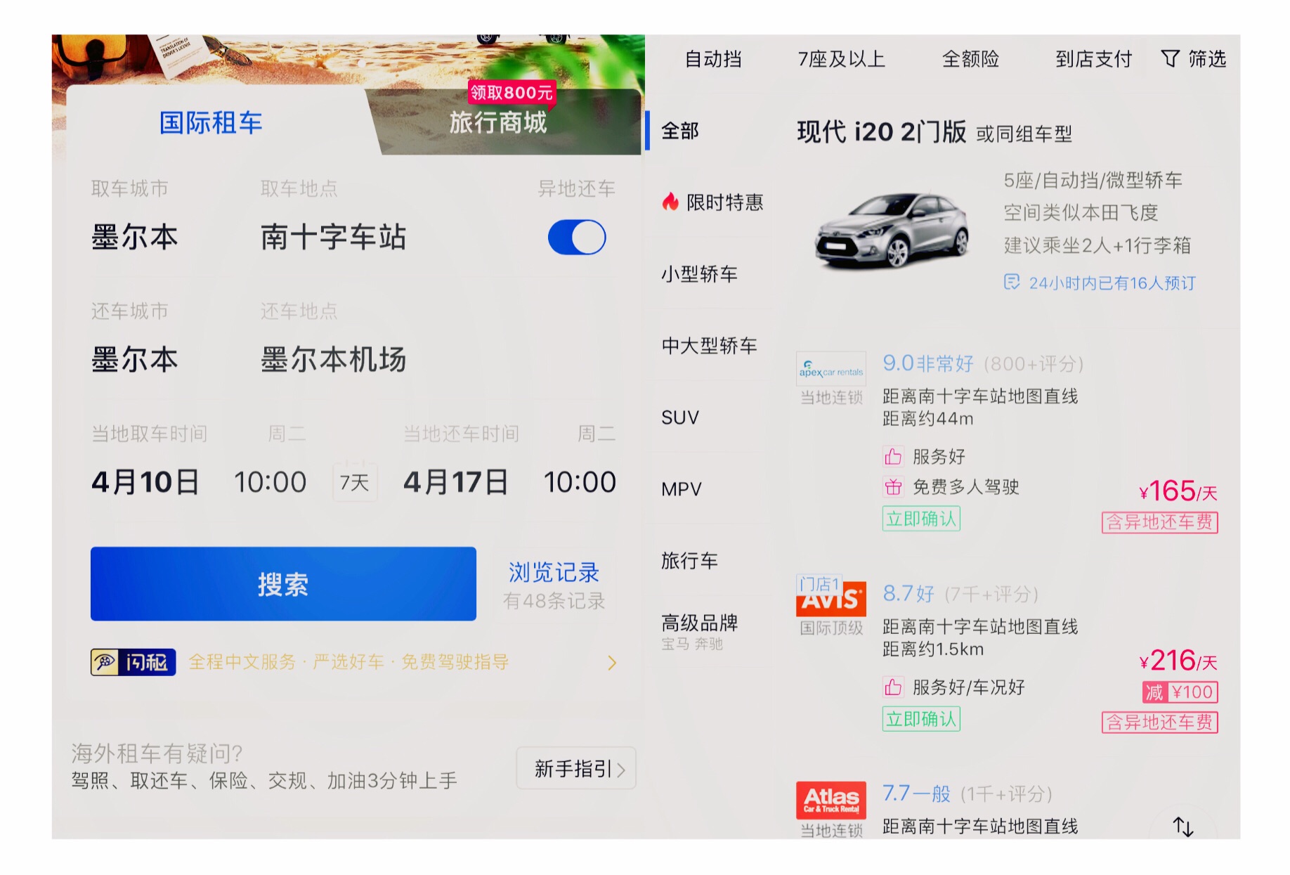 预订流程:在租租车选择你要租车的城市,租车的时间,和取还车位置,系统自动就近检索出门店,车型,价格,按自己要求选择就可以啦
