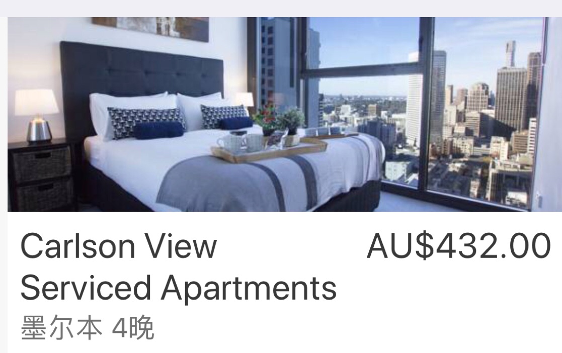 墨尔本:位于CBD的Carlson View Serviced Apartments 公寓,4晚,共计AU$432 实扣2270RMB