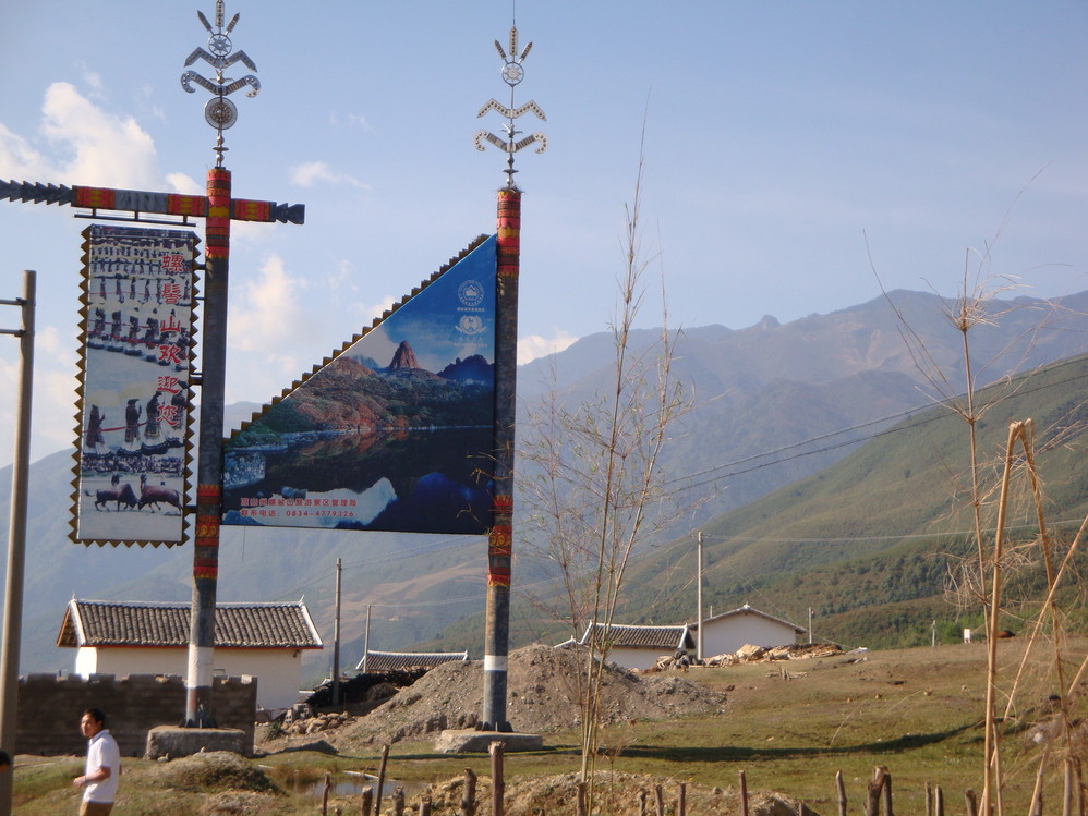 从这里开始下坡,螺髻山的招牌也看到了。
