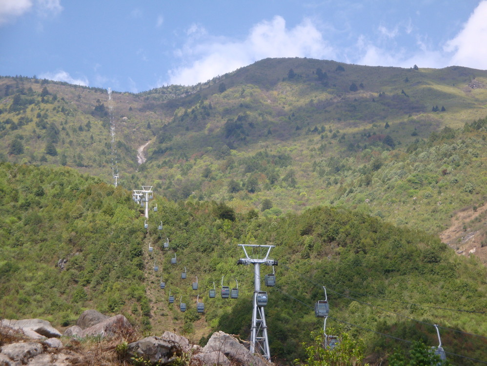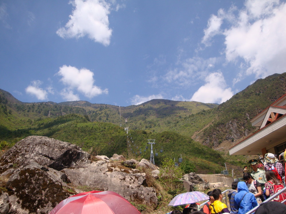 到螺髻山旅游,最痛苦的是排队。先前在山下等候乘坐专用汽车上索道上行点,只有三辆中巴车,大家还在埋怨公司太抠了,车配置太少。到了坐缆车的地方,才知道多配置车也没有,因为缆车是每一分钟坐2人,流量太下,还是要排队。总之排队花去了约2、3个小时,人也站累了。
