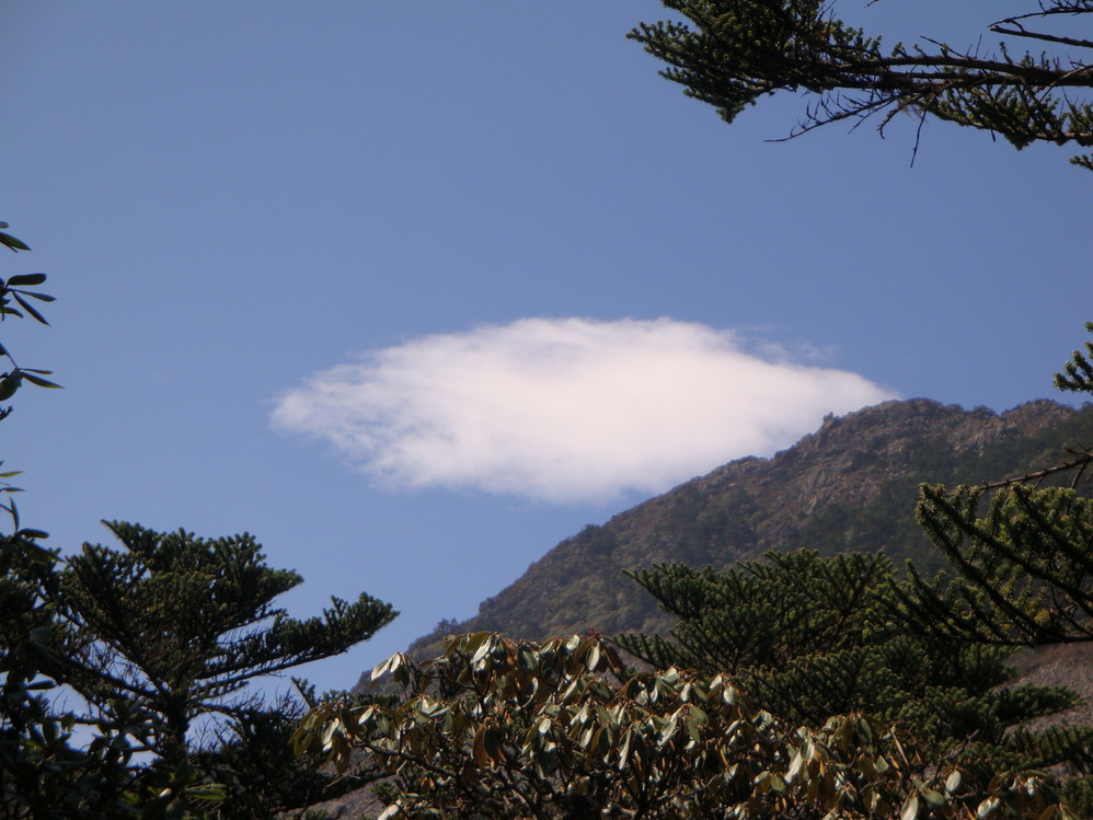 爬山还是很累的,尽管不长,主要是先前排队等待的时间已让人累了。爬上山顶,看到祥云。