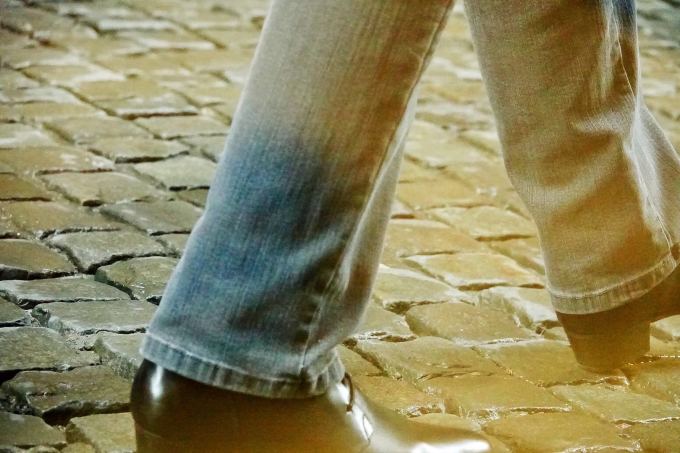 这是一个雨天29.03.2018。在Spiegelgasse罗马砖铺的狭长的小道上卧着伏尔泰酒馆。