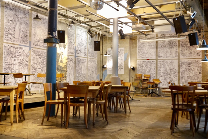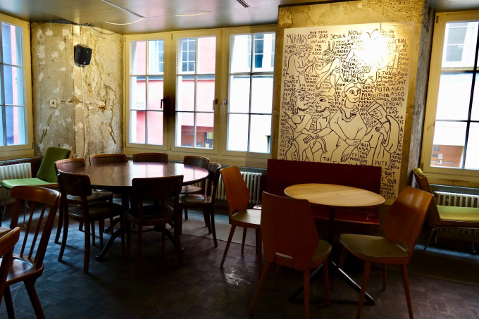 (苏黎世老城中的伏尔泰酒吧,100年前是达达运动的发源地,2002年一群艺术家非法占用了这个酒馆才避免了被拆迁破坏,2016年初面临被拍卖的命运。)
