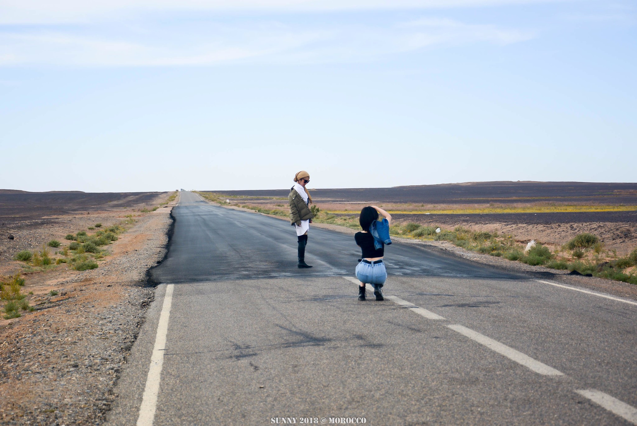 无人公路上,同行的小伙伴们开始拗造型