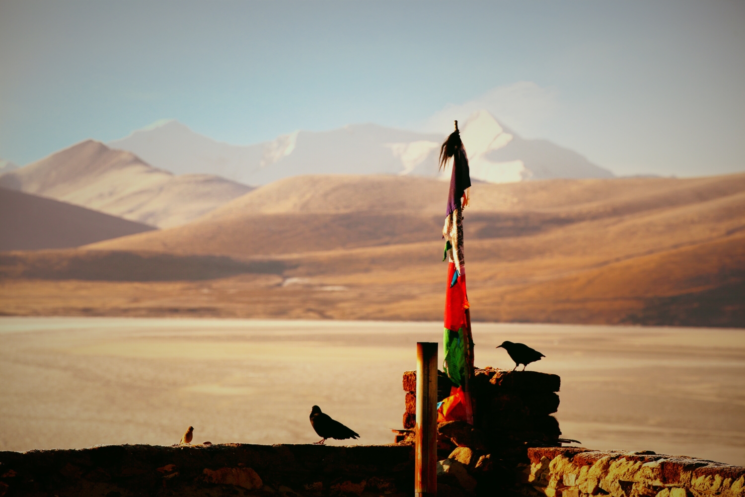 傍晚的普莫雍错,宁静祥和。站在寺庙的观景台上静静地看着湖面发呆,旁边的鸟儿自由自在的嬉戏。