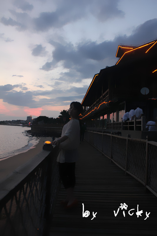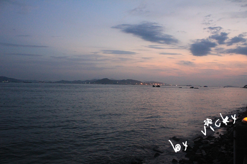 走出曾厝垵 就是海滩,这边沙滩的沙子很细,踩在上面软软的,一点也不痛,海水也非常的清,完全和深圳 的大梅沙不同,此时正是日落的时候,海边一片宁静祥和。