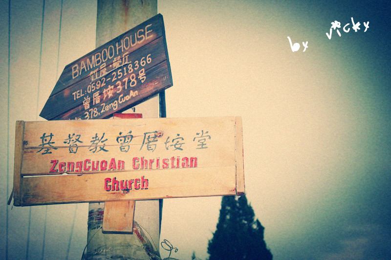 这就是我海舍小屋,和淘宝上看的一样,还蛮干净整洁的,就是木有洗手间,到了客栈,我先把东西放下,这次没带很多东西,随便整理了下,带了相机还有蚂蜂窝下载的厦门 攻略出门了,两边的小店很有特色哦。路口处有个指示牌,那个基督教堂我没有去寻找。