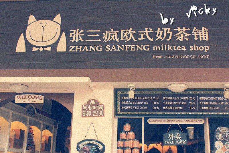 哈哈,鼎鼎大名 的张三疯欧式奶茶铺 ,张三疯不在家,问了店家,是去了娜娜 家旅馆,哇,猫猫的待遇真好啊。