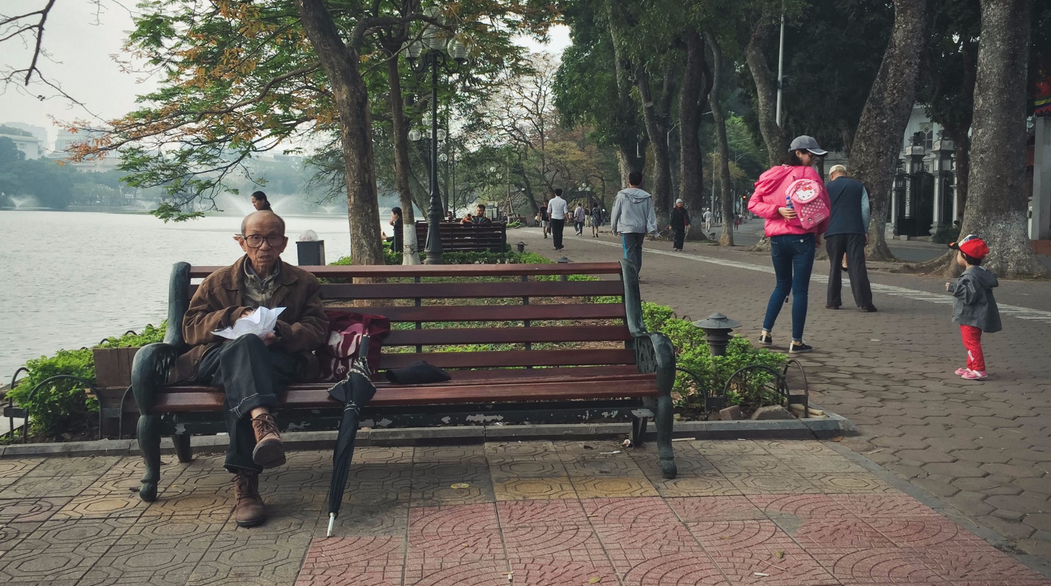 一缕阳光刺破雾霭,散落在还剑湖上,晨光熹微,拉开了河内的清晨。这时已经可以看到河内的年长老幼环绕在还剑湖边上,有跑步的,有早操的,有闲聊的,有遛狗的。