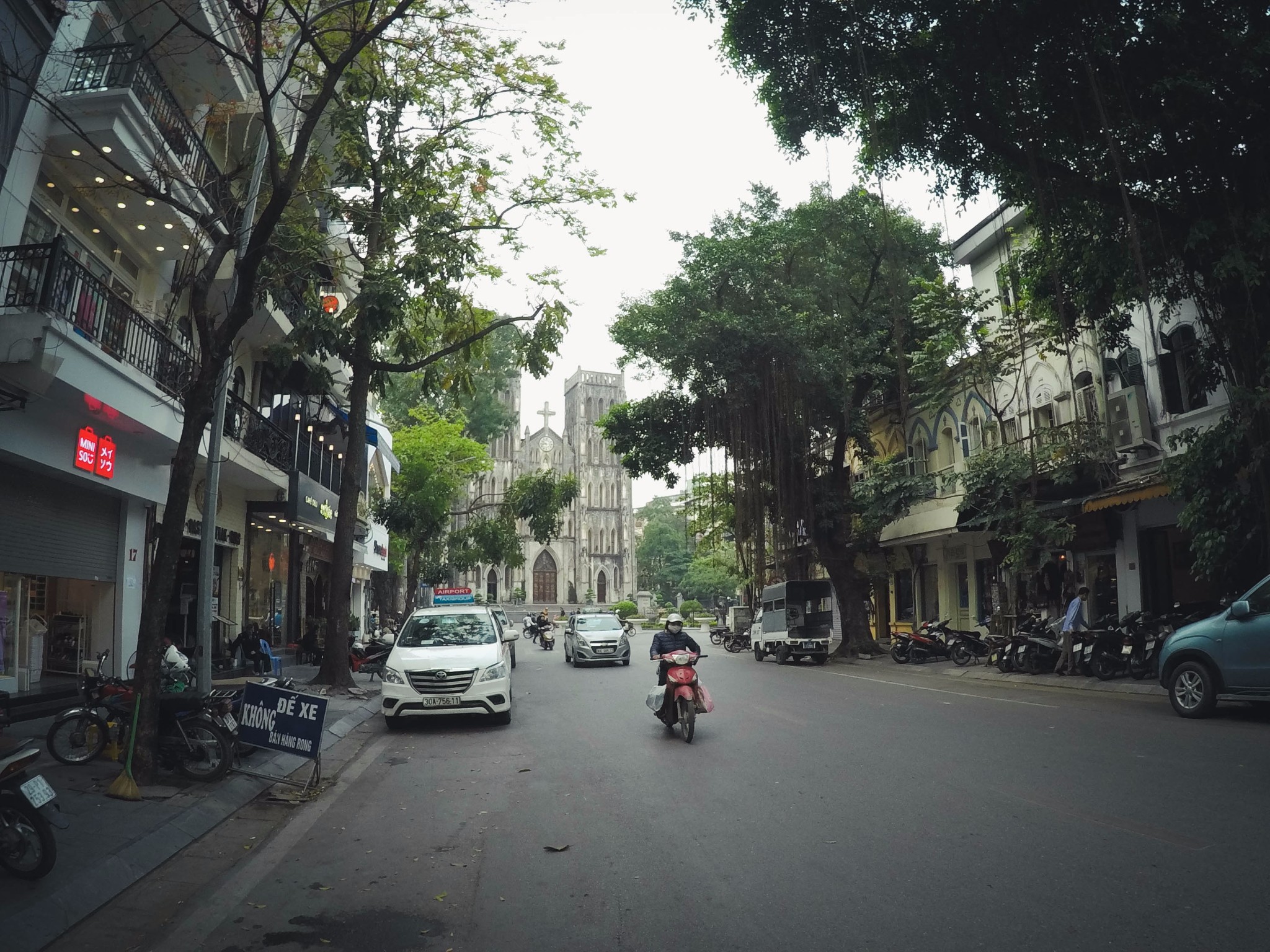 圣约瑟夫大教堂距离还剑湖很近,导航说步行过去不需要10分钟。于是带上一瓶Tea Plus,开始我的寻找教堂之路。河内老城市的道路不宽,你不知道飞快的摩托车什么时候会从身后穿过,所以无论是横穿马路,还是走在路边,都需要眼观四方。