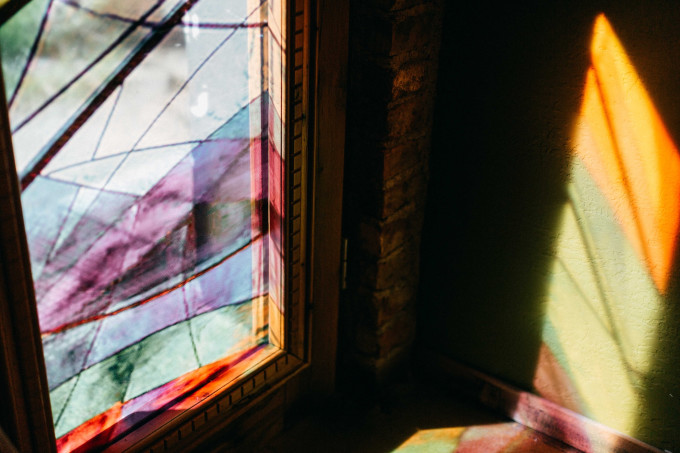 很喜欢这个咖啡馆的风格,角落上有一块彩色的玻璃,阳光洒下的时候是截然不同的色调。柜架上白咧着瓷杯和咖啡豆,连空气中都夹杂着可可香气。