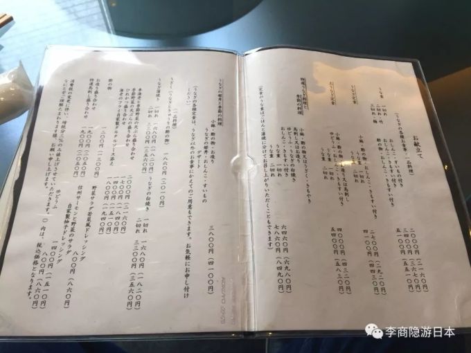 鳗鱼在日本各地都是高级料理,传统知名老铺当然不会便宜,不过绝对物有所值,连菜单都具有漂亮的传统气息