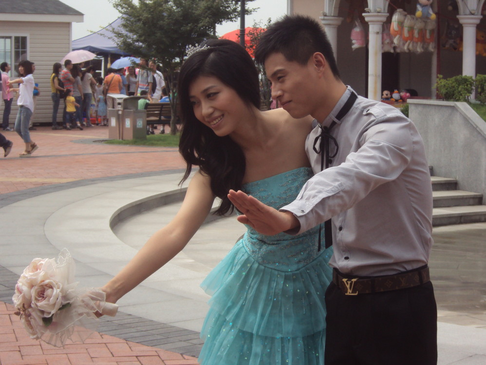 一对正在拍婚纱照的恋人,祝福送给他们