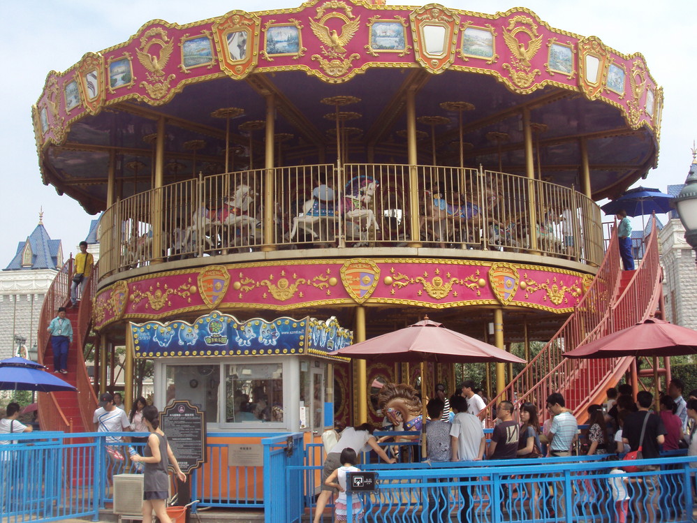 园内的旋转木马更是特别,分为上下两层,是苏州第一个双层旋转木马,上下两层可以同方向转动,也可以反方向转动,骑在这样的旋转木马上,就好像身处电视剧般的梦幻场景,实在是太令人向往了。