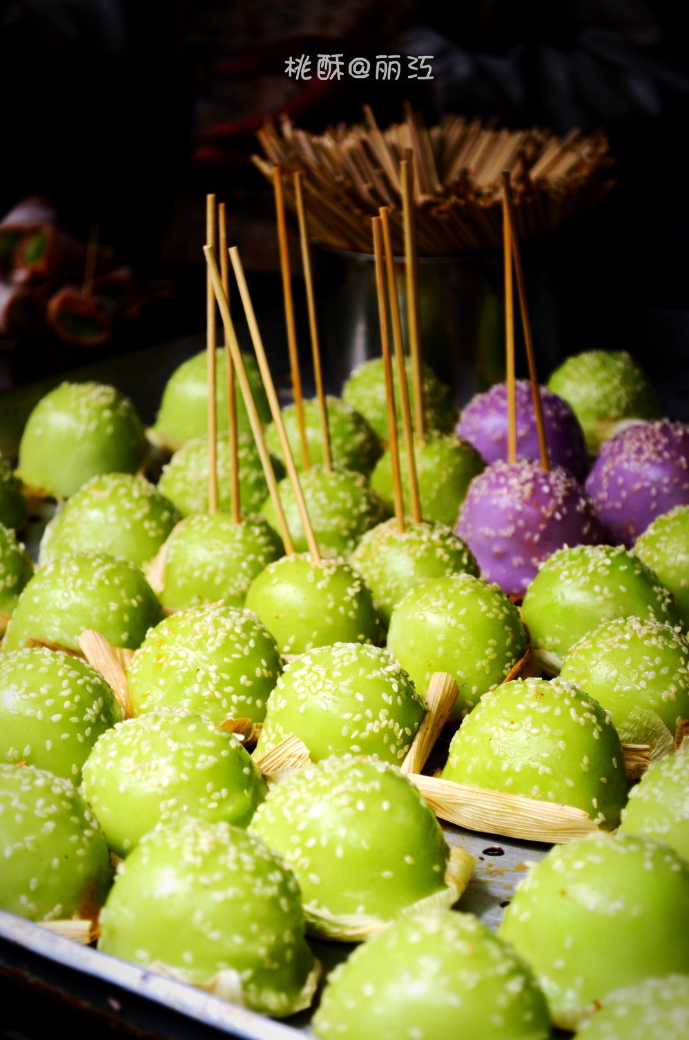 这个也是丽江 的,叫什么名字不记得了,10元3个,三种颜色。像糯米做的,很粘,馅很甜。