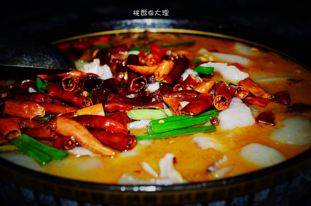 大理 酸菜鱼。30元左右一个小份。里面有酸菜和魔芋(我吃着像),很美味!
