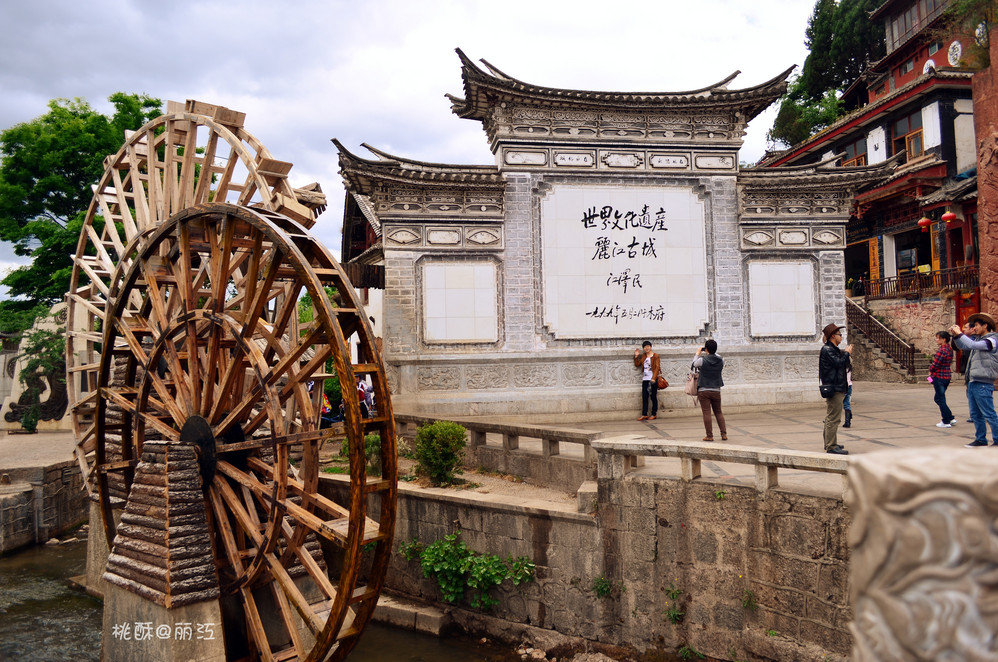 背着我的大包包站在大水车旁,啊,这就是丽江 !