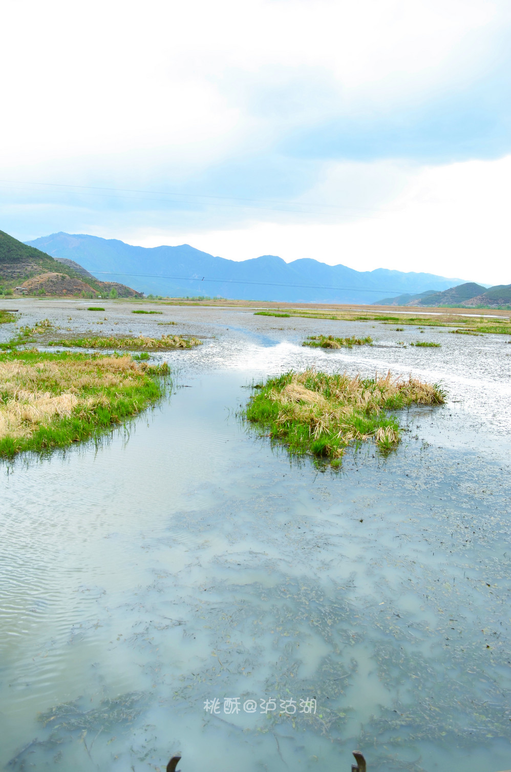 草海的草还没长起来,候鸟又飞走了。不过现在的景象也很有意思,中间是枯草,四周是新发的绿草。