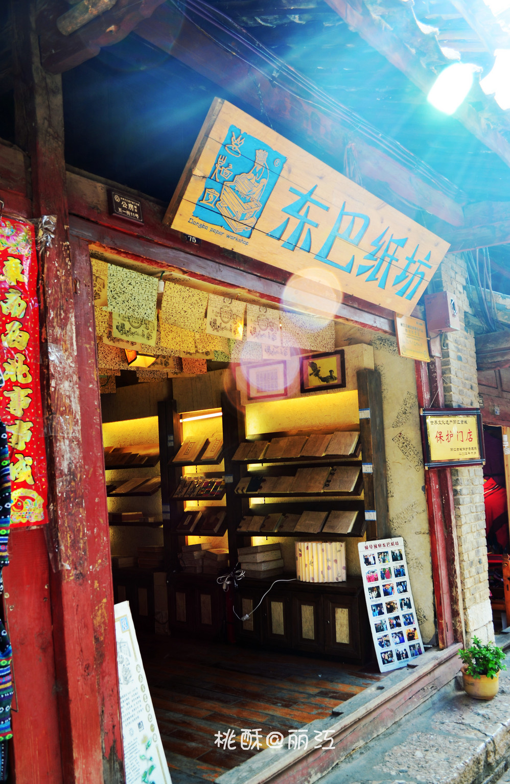 一家销售玉石、银器、茶的小店允许拍照,门口写着茶水免费、风景免费。