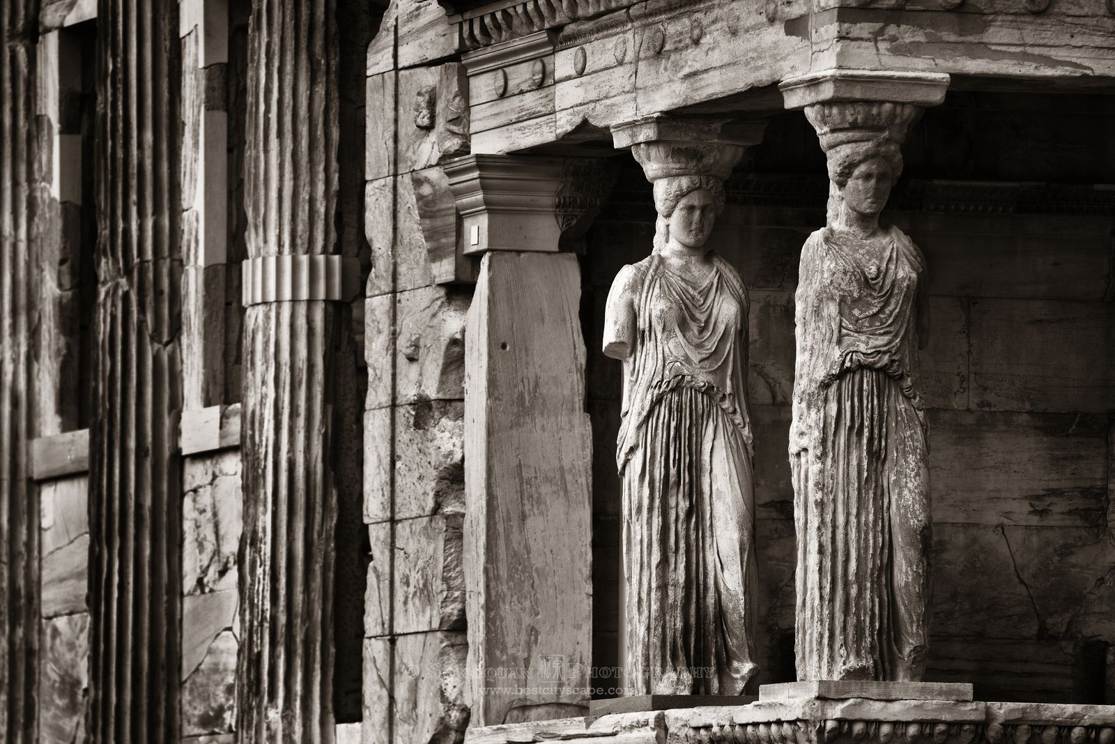 帕特农神庙旁边,屹立着厄瑞克忒翁神庙 Erechtheion 37°58'19.65"N 23°43'35.13"E。